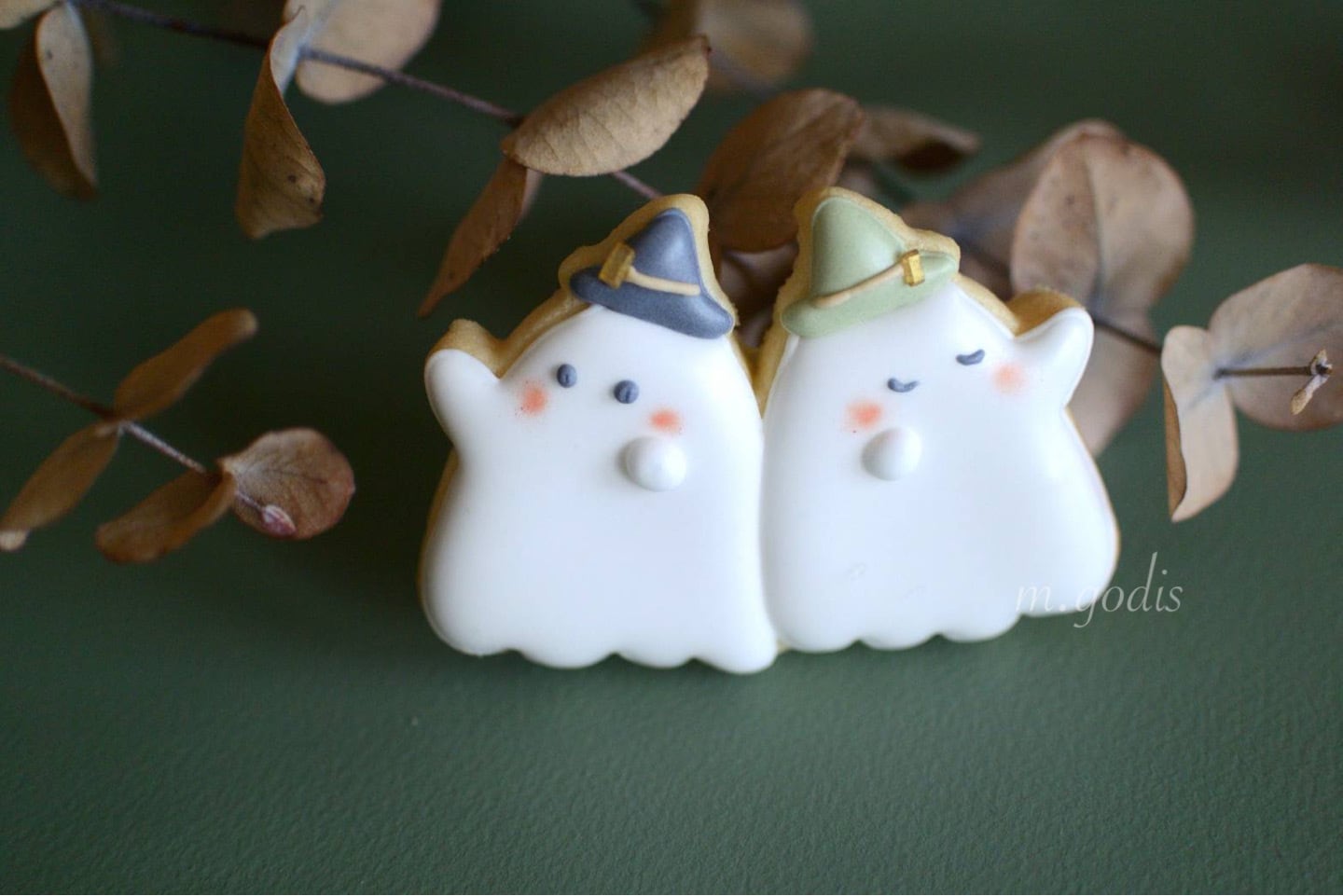 仲良しの ふたごおばけちゃんです⭐ おそろいの魔女帽子を被って ハロウィンパーティーへ♪ size H4cm W6cm